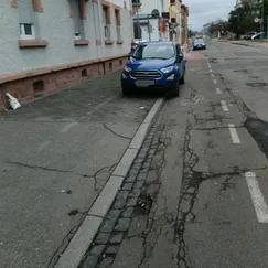 Die Führung der Radwege ist selbst bei legalem Parken problematisch, da die Radwege durch die Dooringzone geführt werden. Da das beidseitige Gehwegparken "auf Wunsch" erhalten bleibt, [5] ist die Gefahr für Radfahrer*innen von Autofahrer*innen, die "nur mal kurz" am Straßenrand parken und unachtsam mit der Autotür einen zu Fall bringen können immer noch gegeben. Da Rad- und Fußverkehr ebenso wenig baulich voneinander getrennt sind, wie der motorisierte und der nicht motorisierte Verkehr, sind Konflikte zwischen den einzelnen Verkehrsteilnehmer*innen in der Planung ursächlich angelegt.